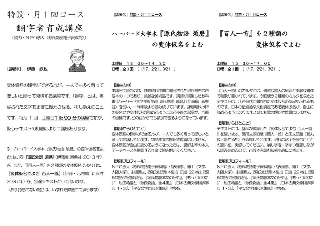 ■[特設月1回コース 『百人一首』を2種類の 変体仮名で読む ]